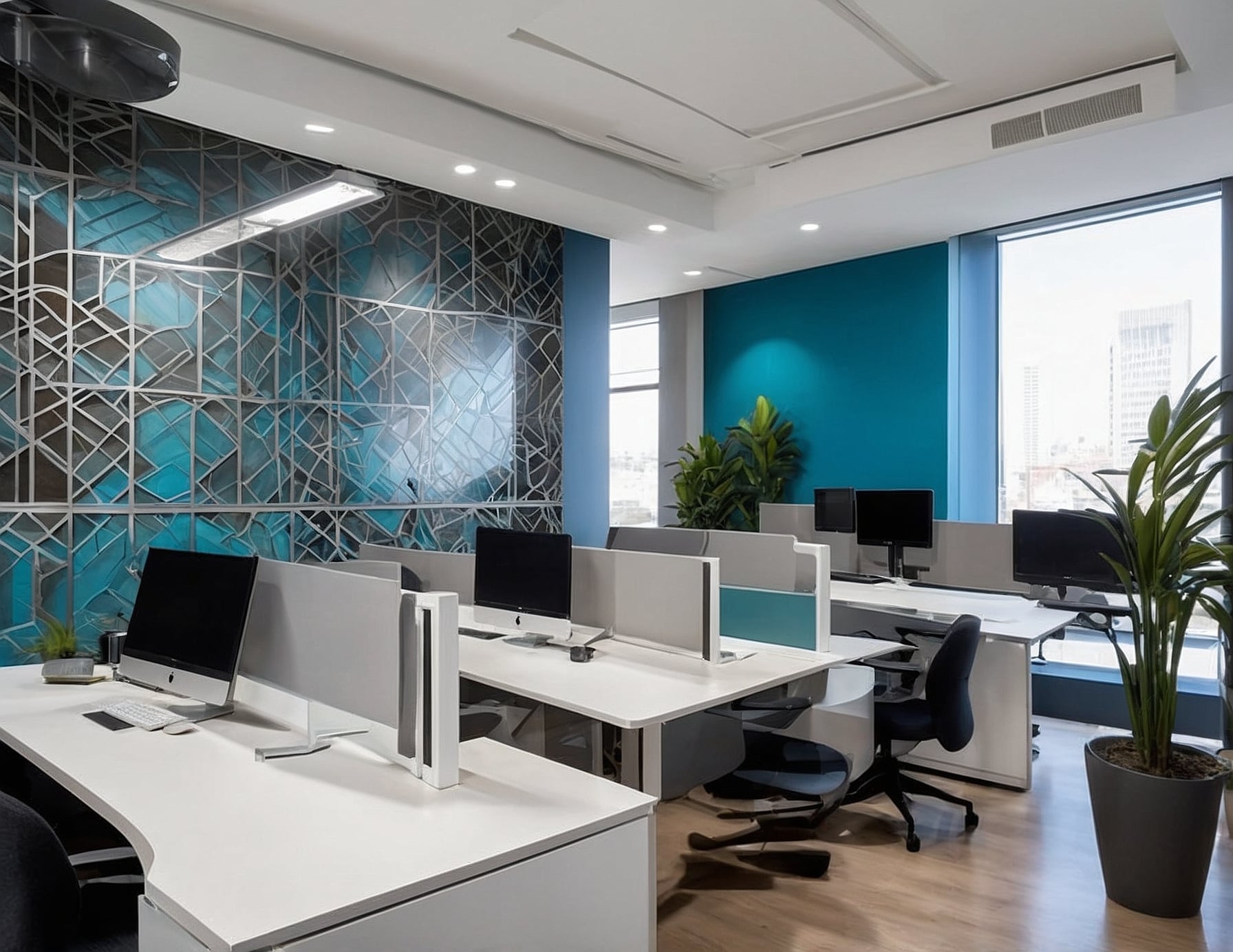 En este proyecto, Aplisol realizó la instalación de vinilos decorativos en una oficina corporativa, aportando un toque de elegancia y modernidad. Nuestro diseño integral incluyó logotipos, paisajes urbanos y elementos gráficos que revitalizaron el entorno de trabajo, creando un espacio inspirador y motivador para el equipo.